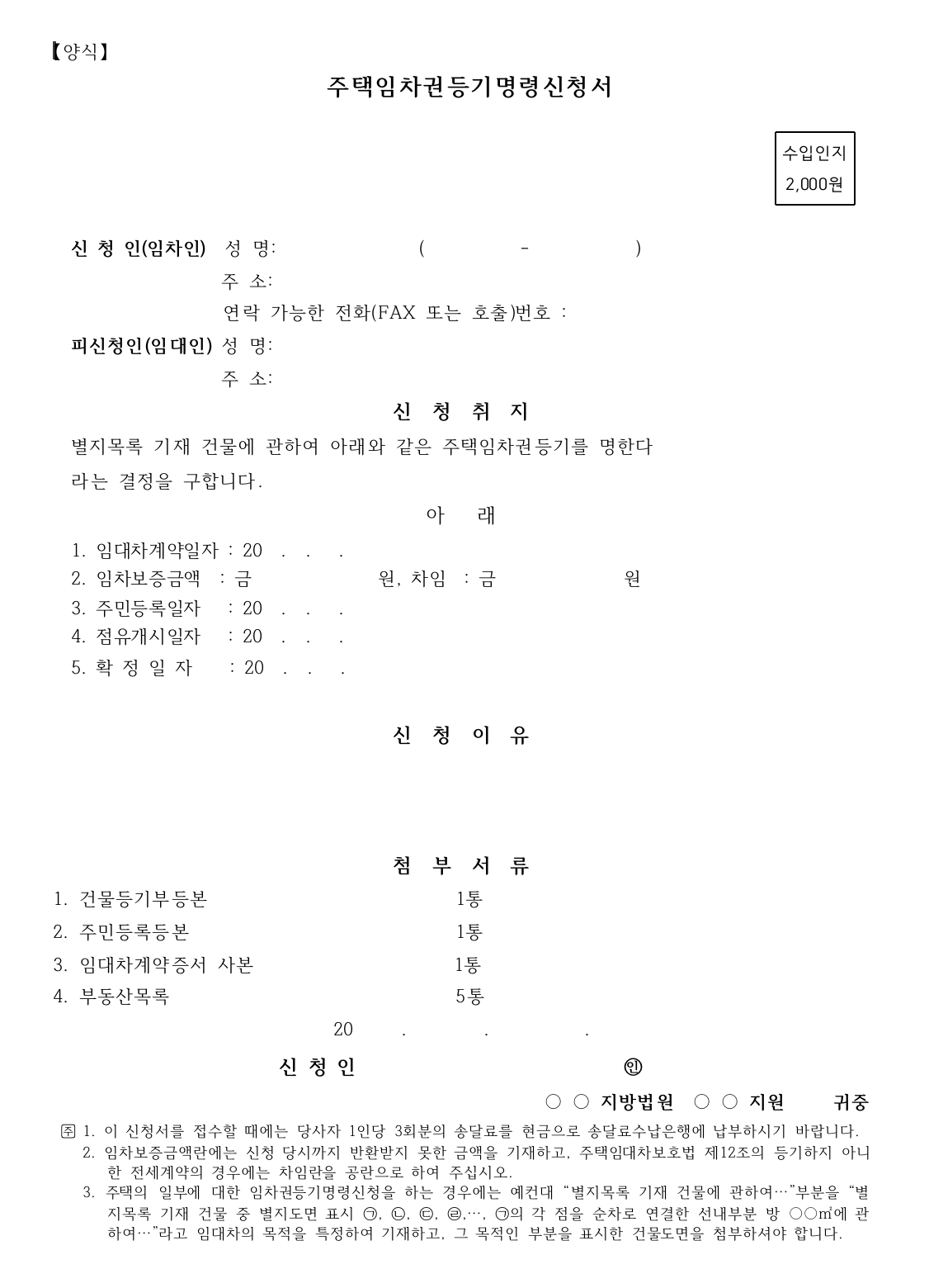 1. 임차권 등기명령신청서 (법원 내에 비치 또는 인터넷 양식)